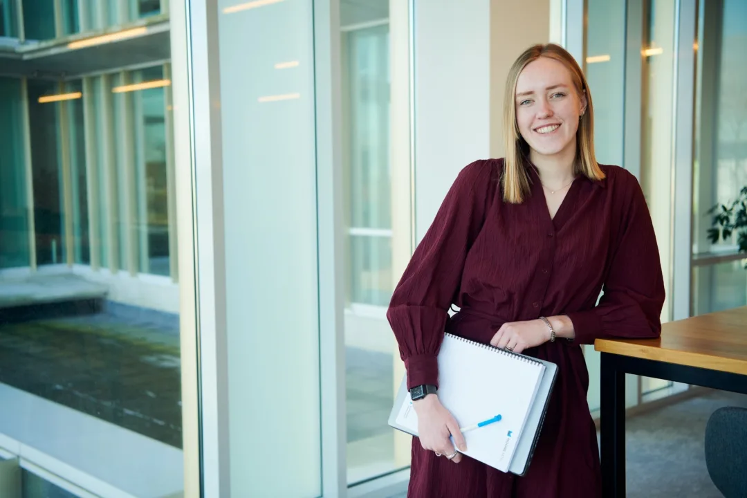 “Om te beginnen voelde ik me vanaf het allereerste begin écht welkom. Het was coronatijd, dus ik zat vaak in mijn eentje op een kantoorkamer of thuis, net als mijn collega’s”, begint Michelle. Ondanks de omstandigheden voelde de jonge twintiger zich direct thuis bij het kantoor aan de Noordwijkse Jonckerweg. De laagdrempelige cultuur van het kantoor viel haar meteen op: “Er heerst hier geen strikte hiërarchie, het is juist laagdrempelig. Voor nieuwe collega’s is dat prettig. Je wordt gelijk bij de hand meegenomen en overal bij betrokken. Het kantoor mag dan wel deel uitmaken van een grotere organisatie, de charme van ons ‘kleinere’ kantoor en persoonlijke aanpak – ook richting klanten – is behouden gebleven. De voordelen van een grote organisatie zijn er ook: wij hebben nu extra kennis, ontwikkelingsmogelijkheden en kansen in huis. Dat voelt goed.”